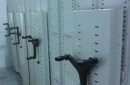 Разработали проект стеллажей по индивидуальным размерам. Установили мобильные стеллажи серии Т с механическим управлением.