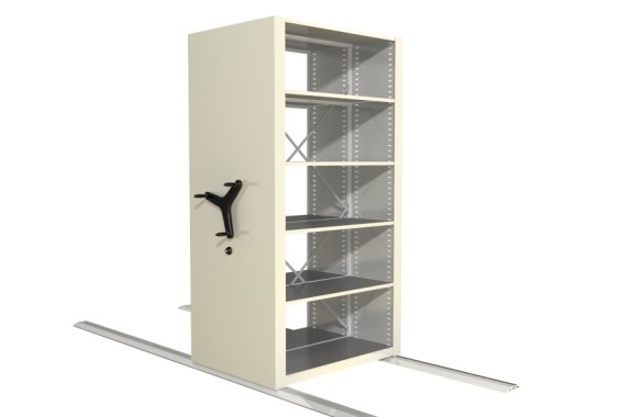 Основу конструкции мобильных стеллажей составляет разборное движущееся основание (база) с рельсовой системой, каркас, привод передвижения. Привод механический от штурвала, с автоматическим компенсатором ослабления натяжения цепи и стопорным механизмом. Трехлучевой пластиковый штурвал с вращающимися эргономичными рукоятками. Детали каркаса – сплошные стойки, полки, крестовины.