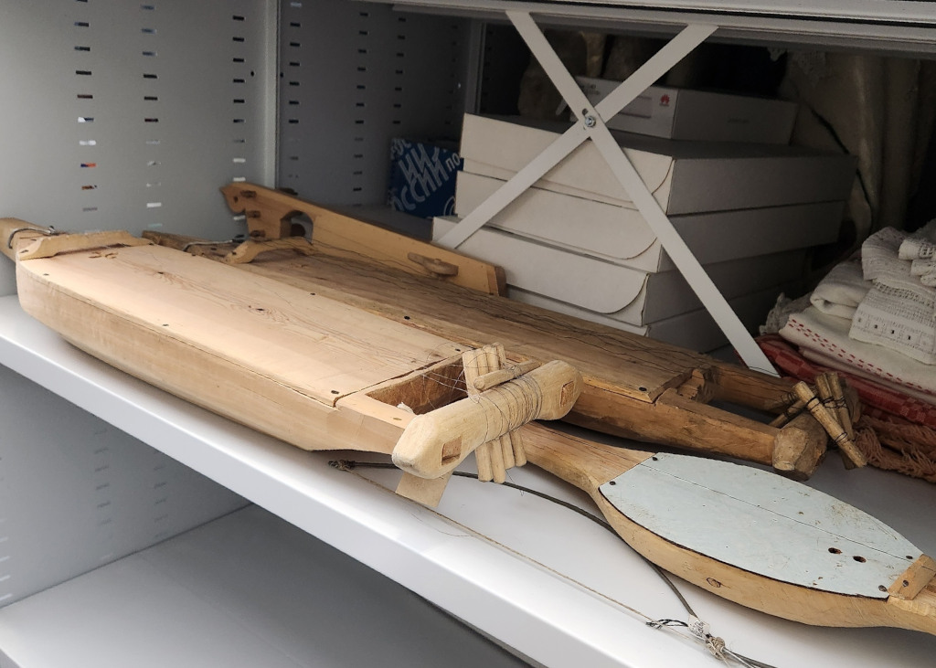Стеллажи с ящиками организуют упорядоченное хранение краеведческих фондов.